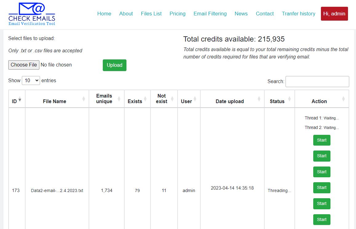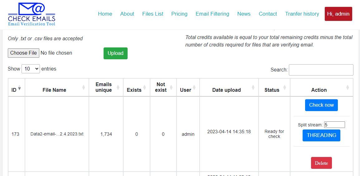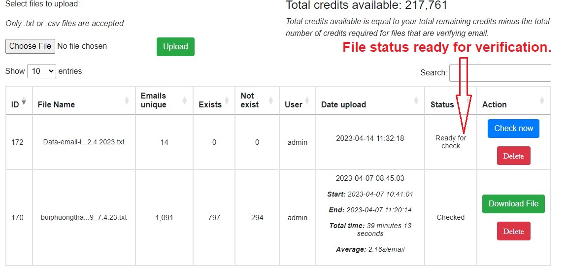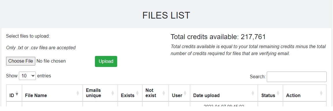- Here, you upload the file containing the email list to be verified. Note: The system only accepts .txt and .csv files.