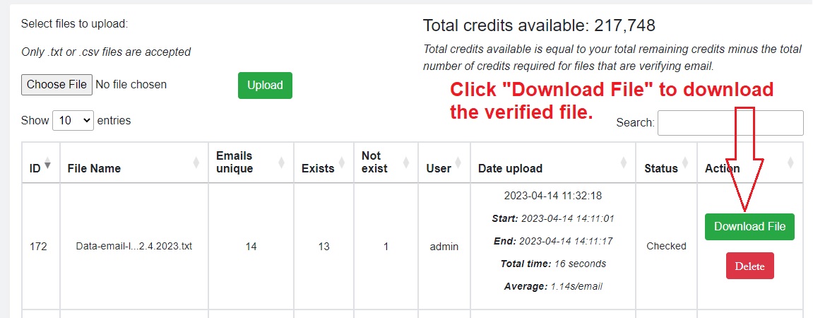 - The system will run automatically until the last email is verified. Then the Staus column will change back to Checked and you can download the verified email file.