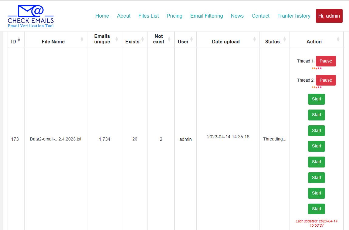 - The Status column is showing Threading... which means it is doing email verification by threading.